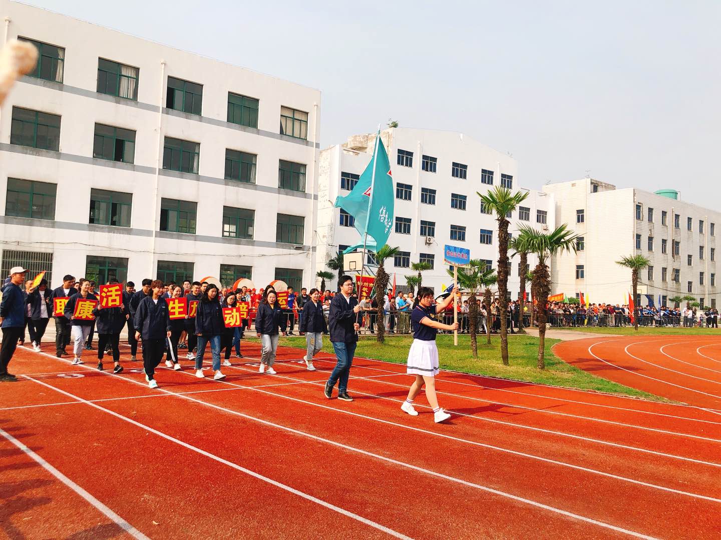 导语:6月1日,杭集镇第八届运动会在杭集中学运动场隆重开幕。来自全镇村组及企事业单位的36支代表队,近一千多人参加了比赛,尊龙凯时集团也派出了运动员代表队参加此次运动盛会。